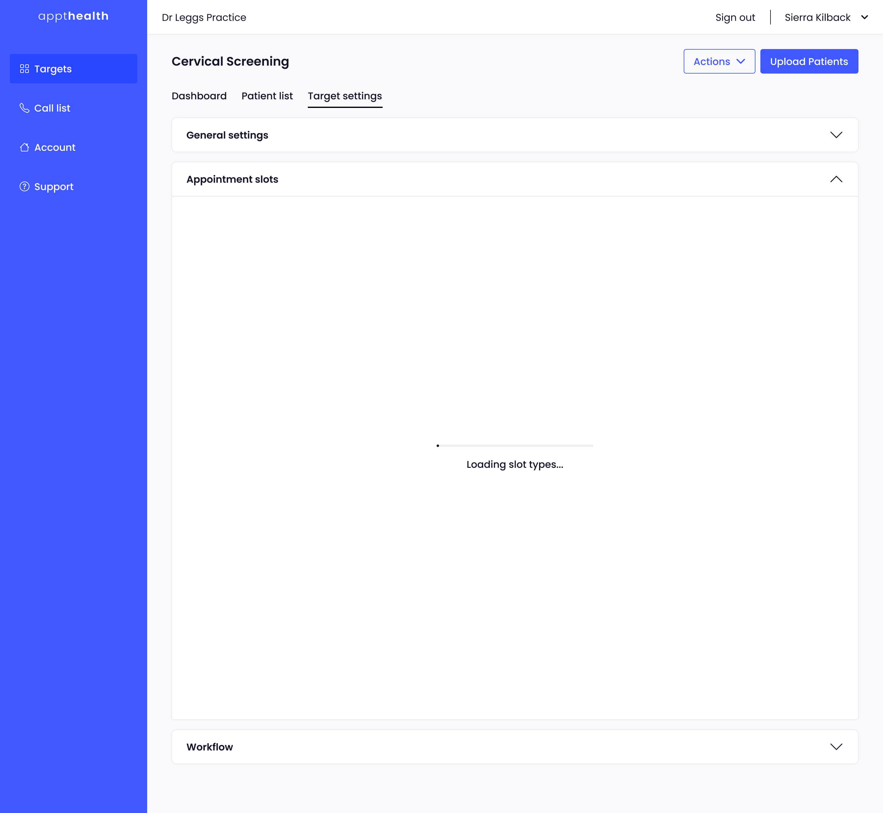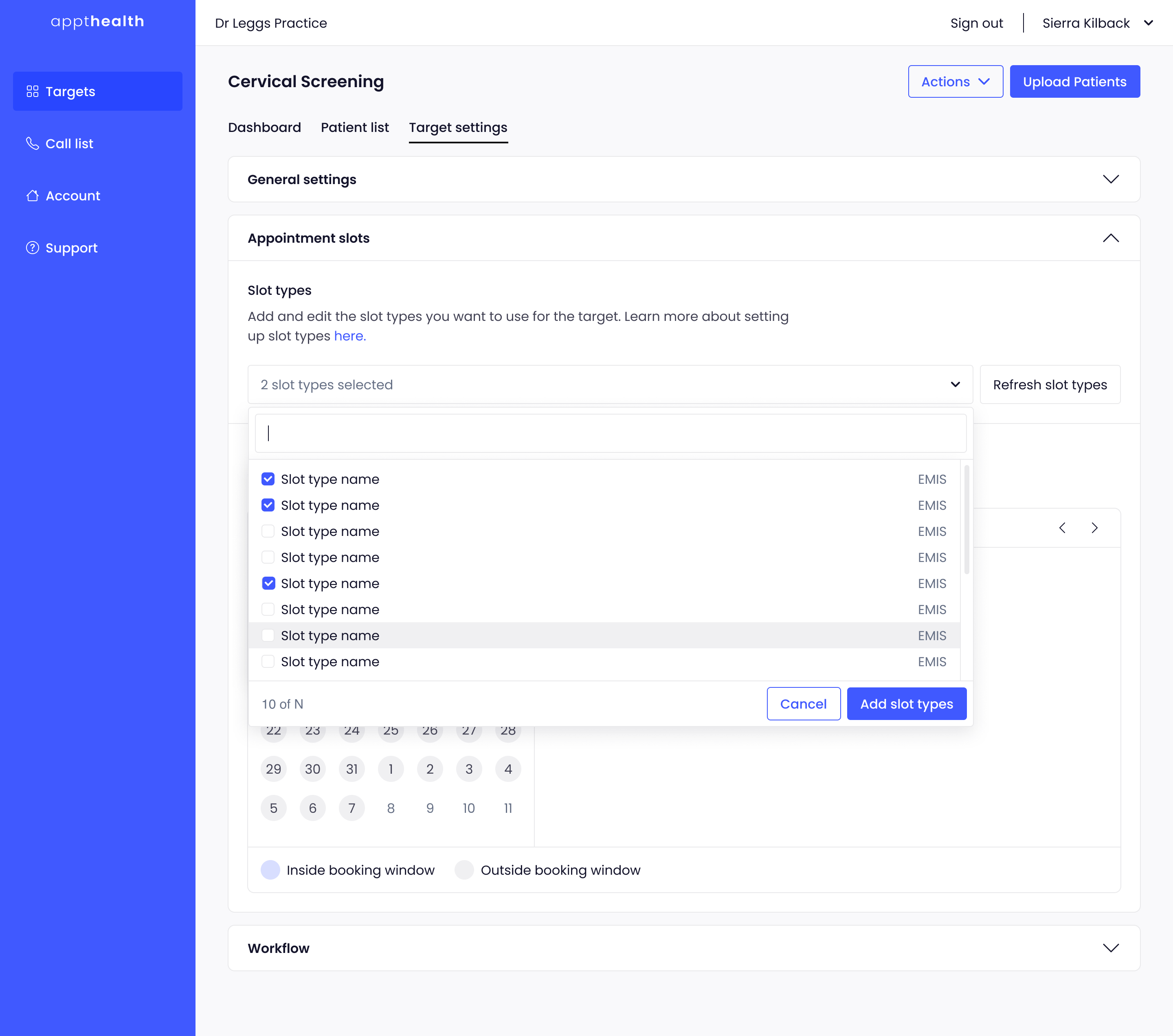 Once you have entered your credentials into the Appt Health integration page, you are ready to add your EMIS slots to your Appt target.